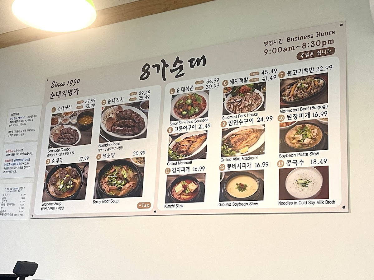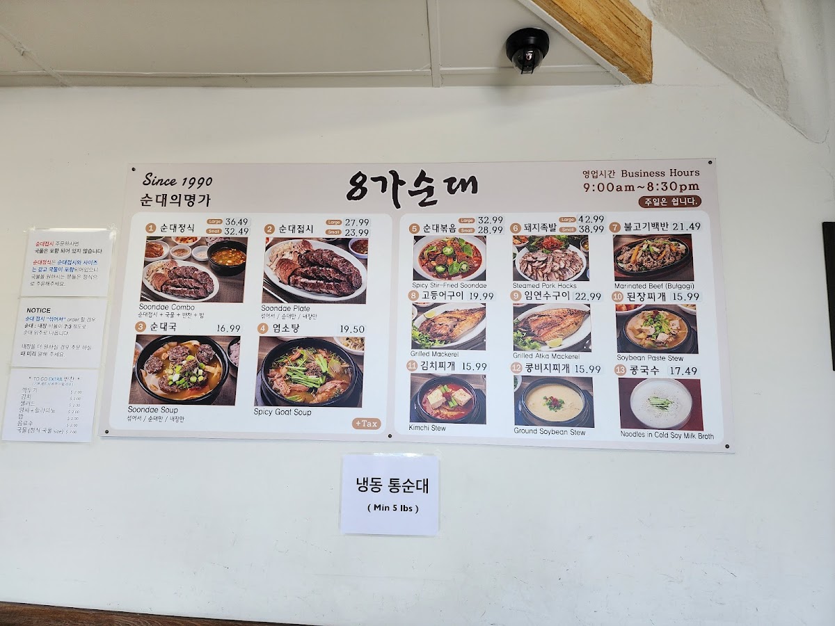 Welcome to Eighth Street Soondae 8가순대, a cherished gem nestled in the heart of Los Angeles’ Koreatown, renowned for serving the best soondae (Korean blood sausage) in town. The menu features a delightful variety of dishes centered around this traditional favorite, with highlights like soondae guk—a hearty soup that boasts a clean broth and savory pork intestines, praised for its authentic flavors.